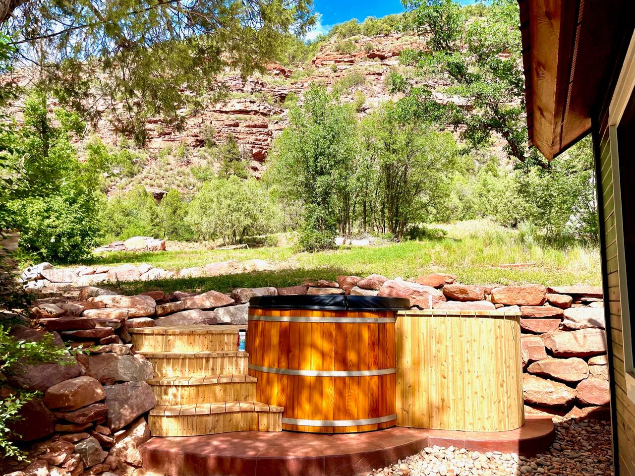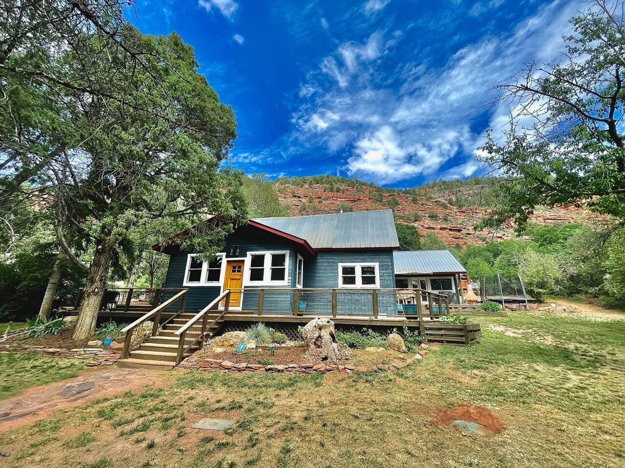 Unwind in our cedar hot tub after a day of adventure. This 4-bedroom retreat, originally built in 1890, sleeps your whole family with kid movie hideaway, trampoline, rope swing, private playground, and the most epic fire pit you've ever seen in your life. Cedar hot tub & fire pit Special "hidden" movie room for kids Trampoline, swings & slide Fully stocked kitchen Minutes to trails & lakes Superhost care—fast replies within an hour. Book your dates now before they fill up!